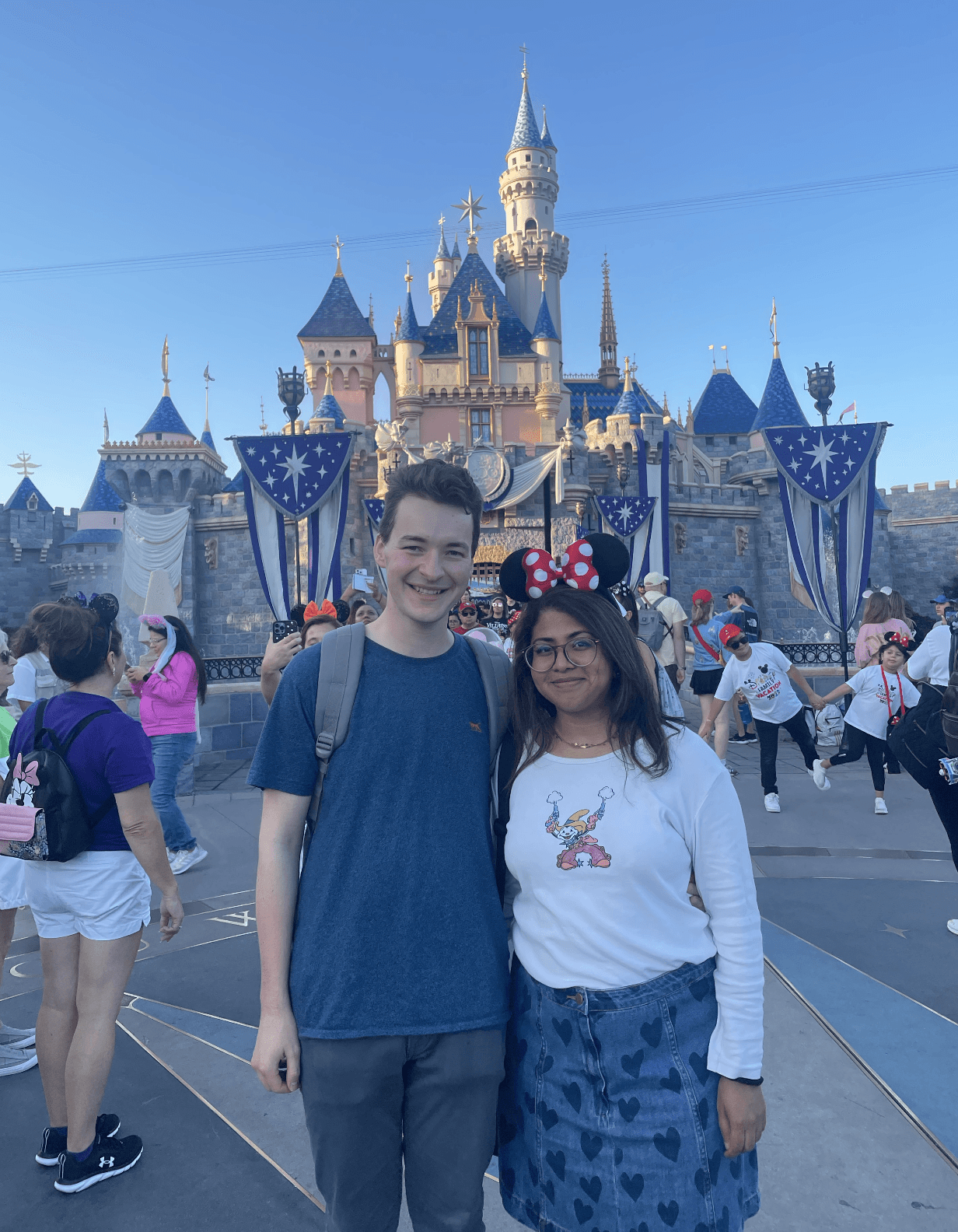 Jack and Faria met through a flatmate finder, and what started as a practical decision quickly turned into something special. Life since then has been a joyful adventure, filled with discovering new spicy foods, watching movies together, and getting delightfully lost at Disneyland on a spooky night.